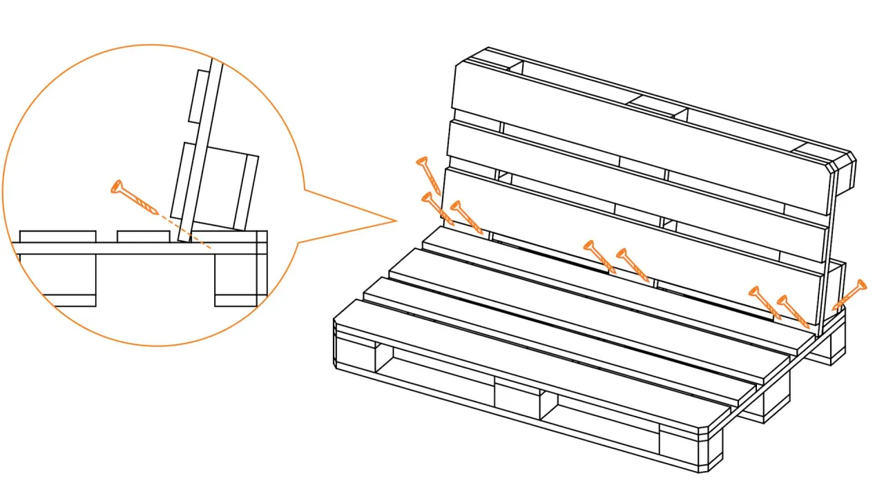 - Połącz palety za pomocą długich wkrętów lub śrub, upewniając się, że są stabilne.